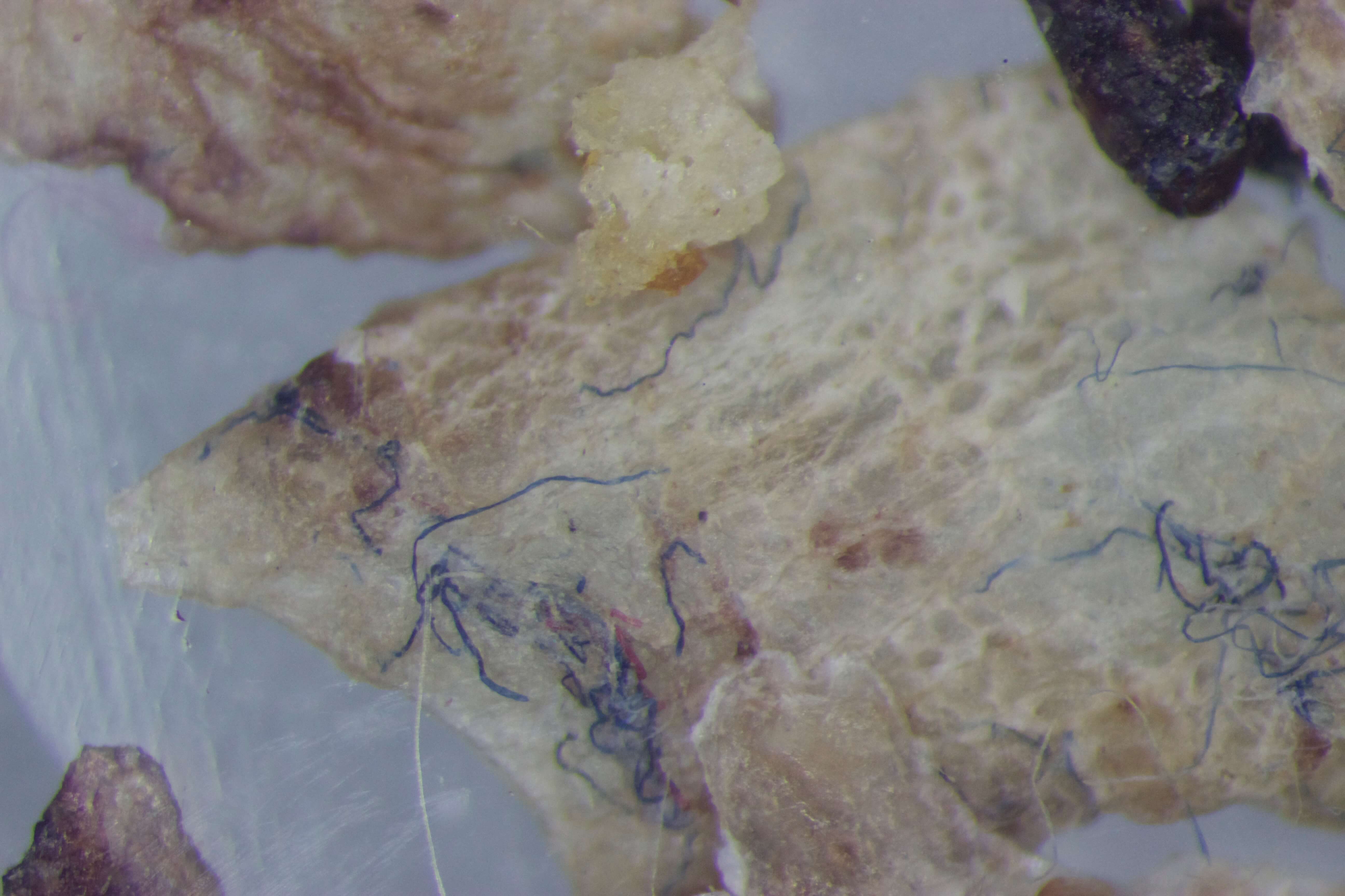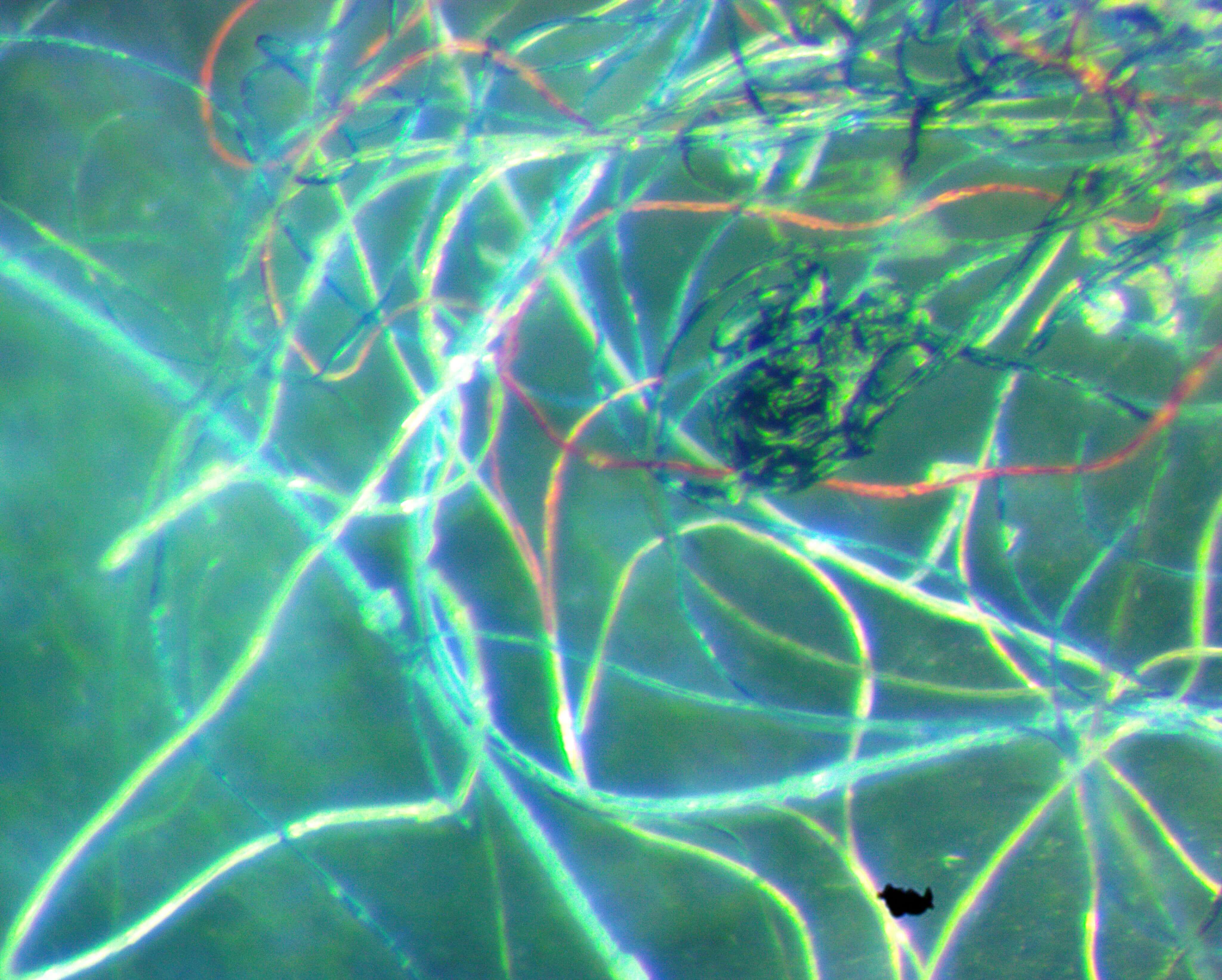 Image 4: Blue and white filaments seen intertwined in a scab.