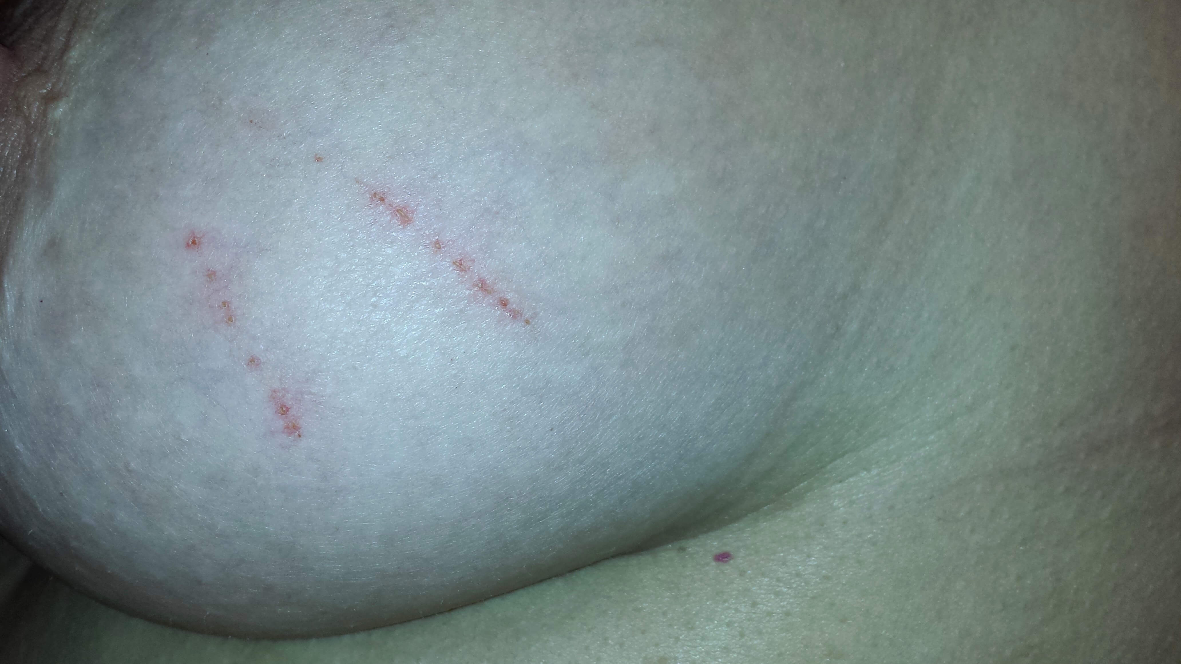 Image 36: Streaks on an MD patient’s skin consistent with Bartonella striae.