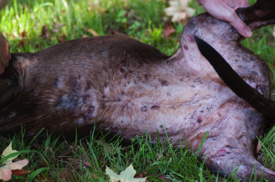 Image 45: Dog with MD lesions. Photo courtesy of Edward C. Rasmussen.