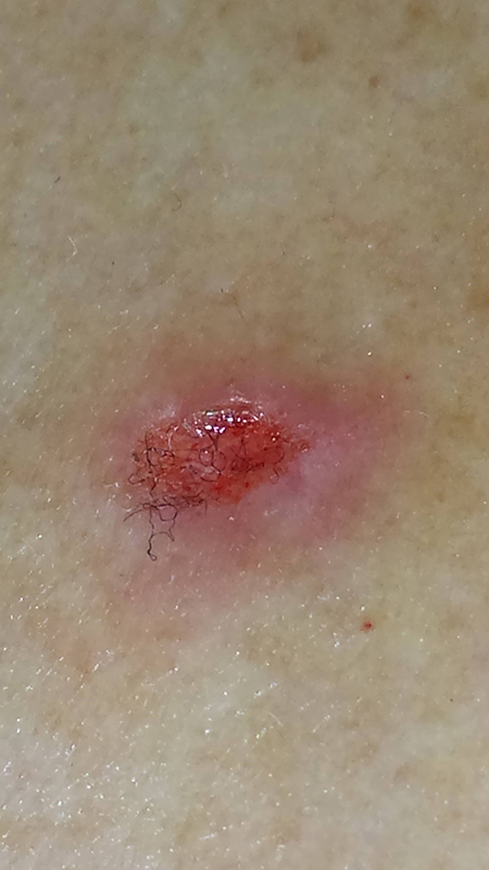 Image 30: Single gelatinous "plug" seen on the underside of a small scab