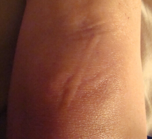 Image 35: Example of the spontaneous "scratches" that appear on the skin of many MD patients.