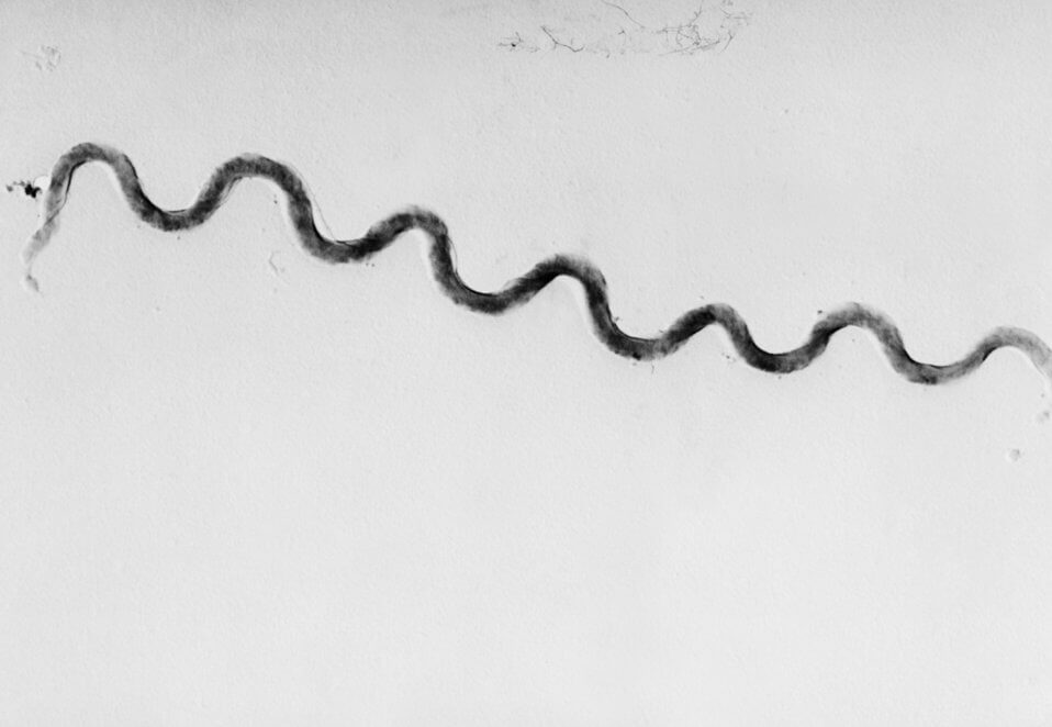 Image 44: Photomicrograph of a spirochete (in this case, Treponema pallidum), by Bill Schwartz, CDC, Courtesy: Public Health Image Library. Public domain.